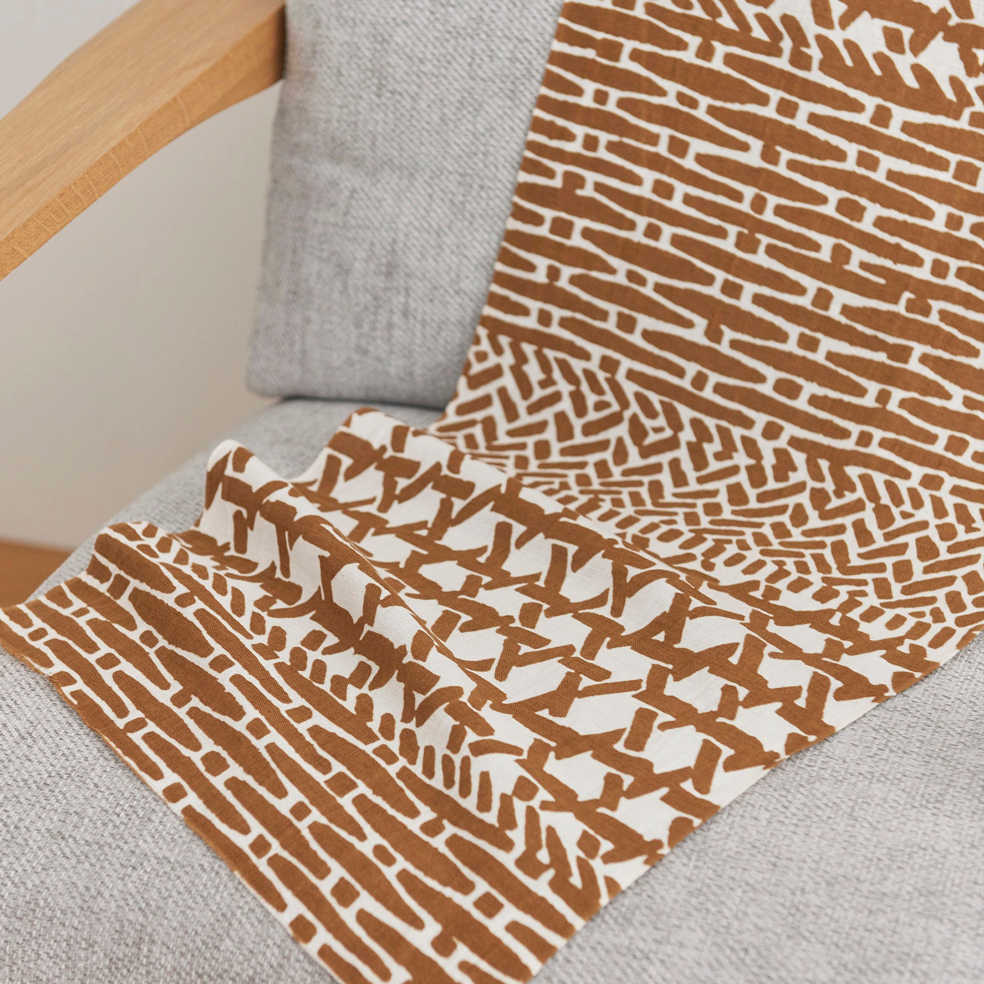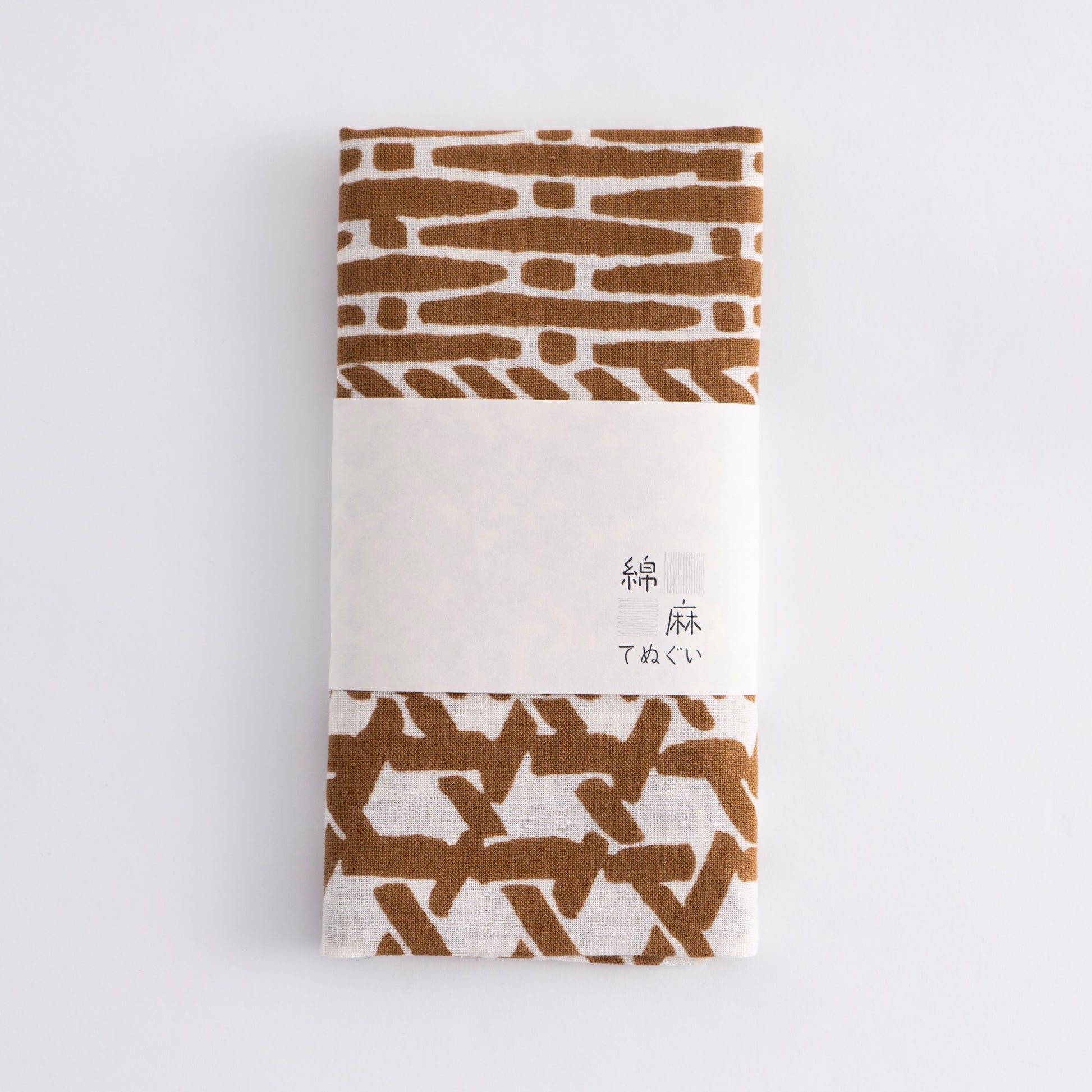 This tenugui towel is about 37cm x 100cm (14in x 39in) and made in Japan of cotton linen woven with cotton warp and linen weft. Cotton and linen tenugui towels are durable, absorbent, and easy to dry. They can be used as table runners, kitchen towels, and tea towels.