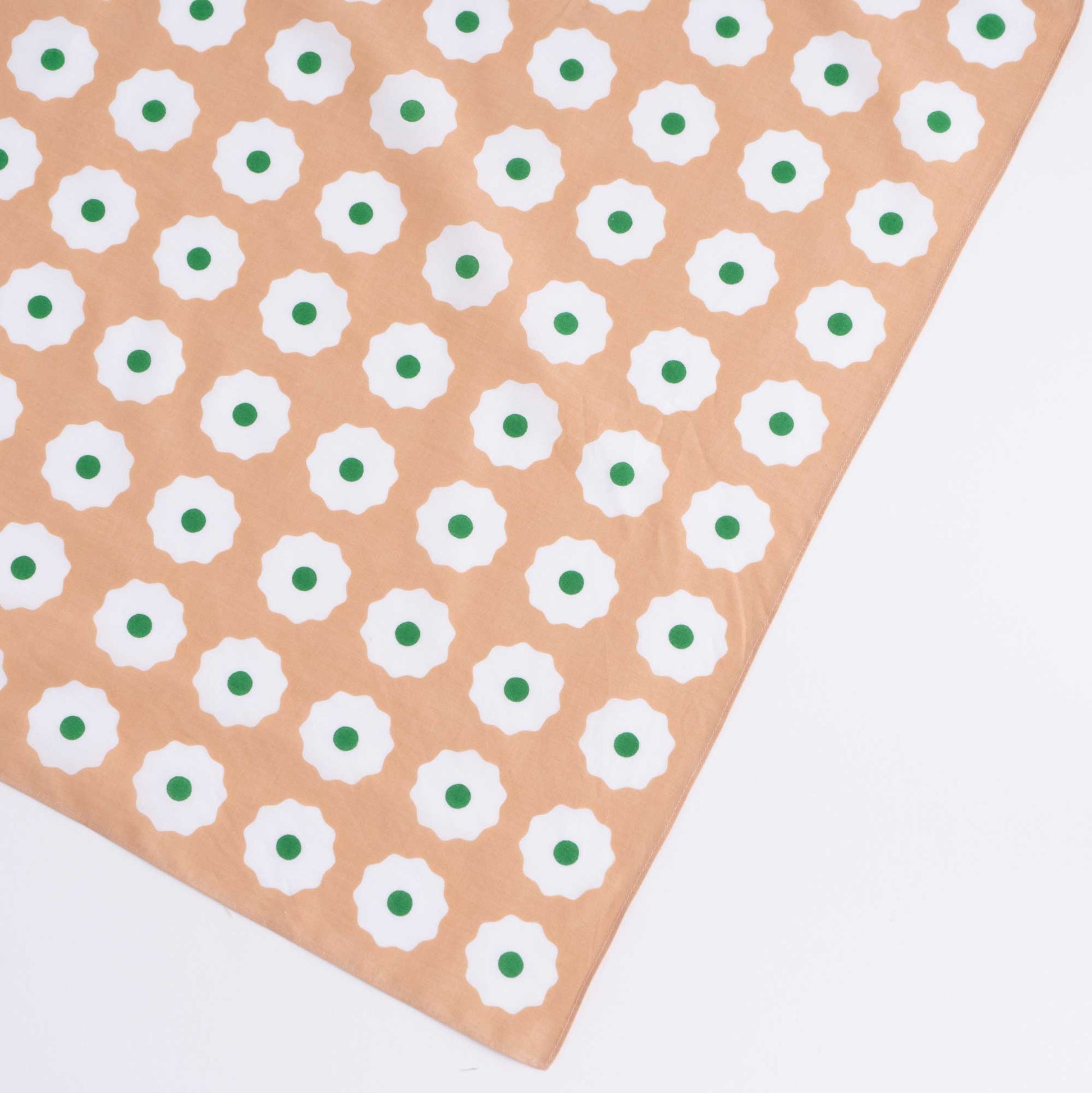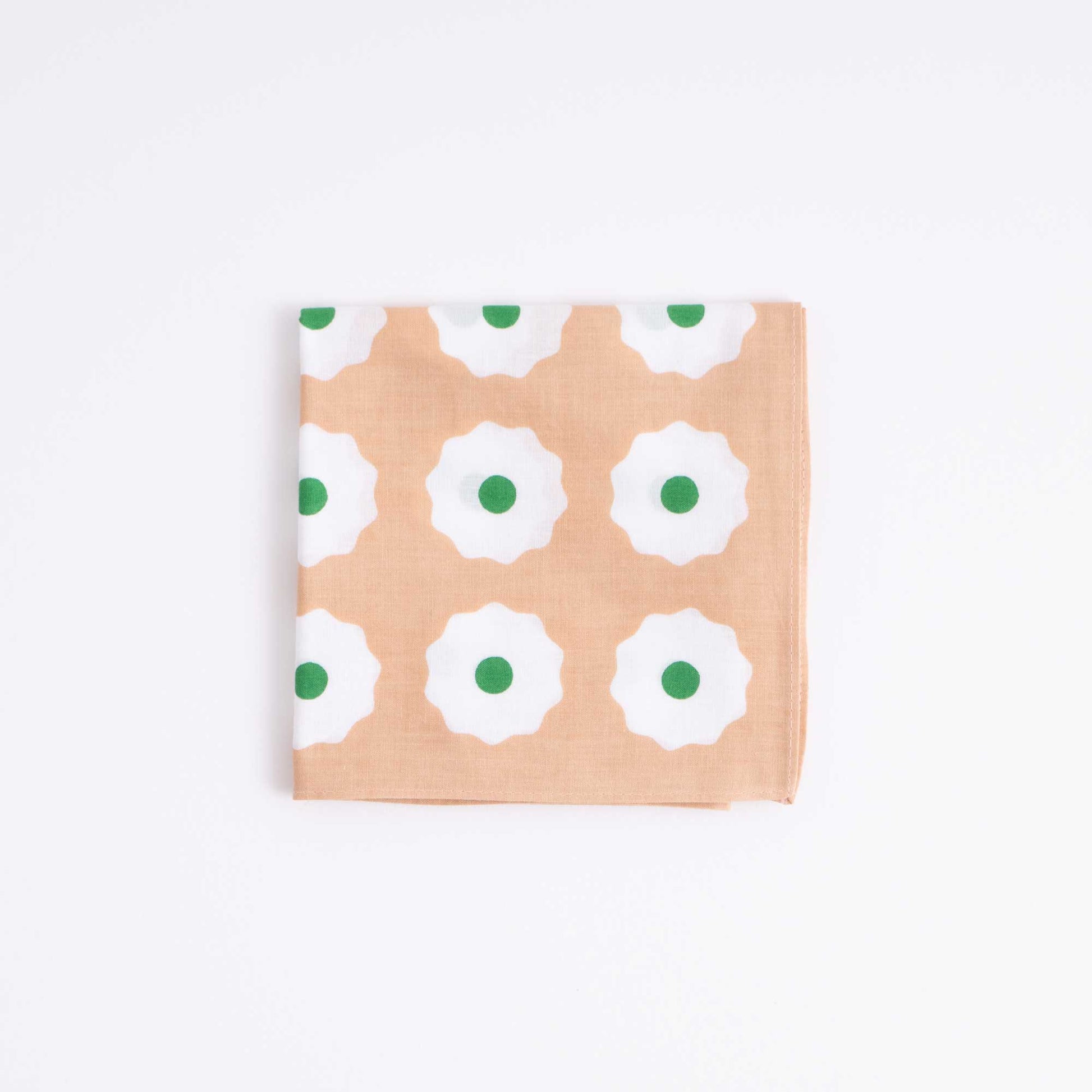 This is a small size furoshiki made of 100% cotton, 50 cm square. It is dyed using a technique called hand printing. It is the right size to wrap a palm-sized box or a jam jar.