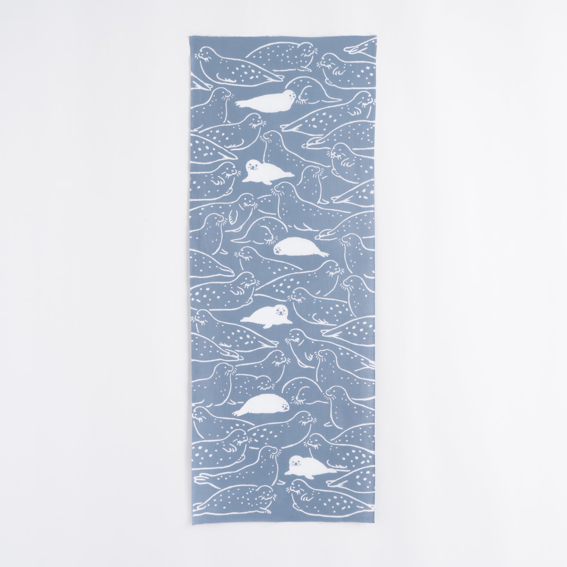 This tenugui cloth depicts the relaxing appearance of the popular sargassum seals spotted seals at the aquarium. The baby seals' expressions in various places are fascinating. It is a cool and relaxing tenugui towel that makes you want to take a nap with them.