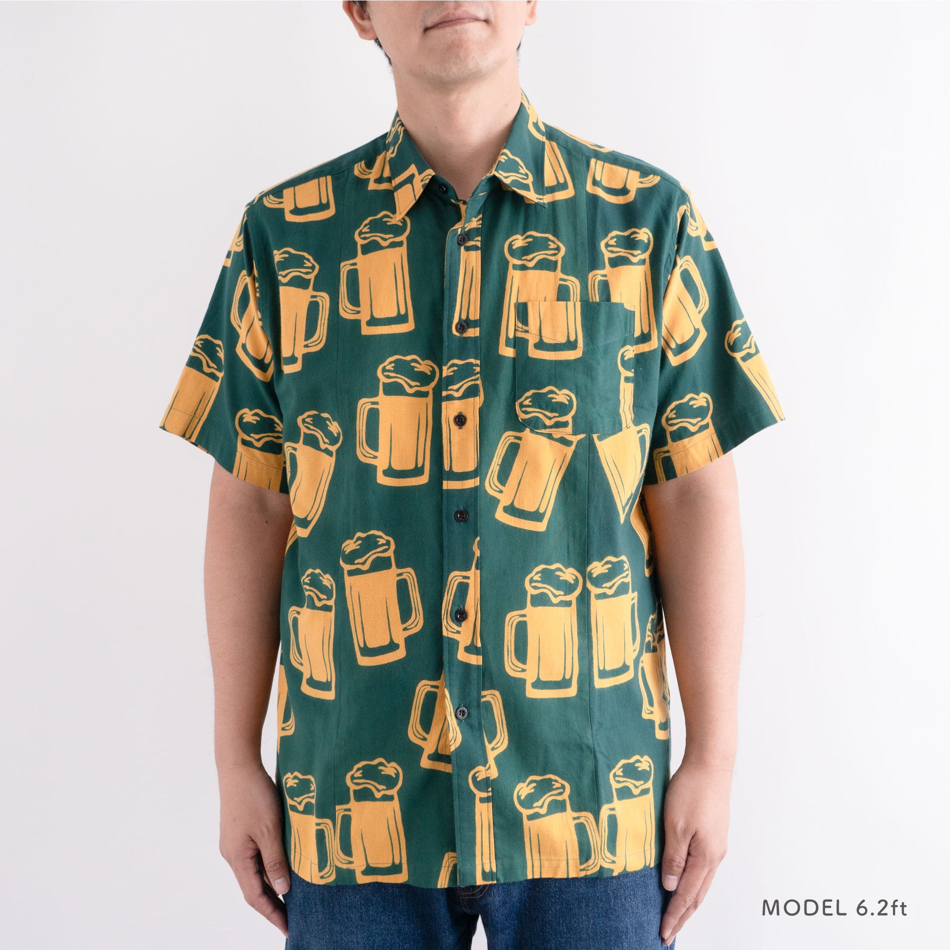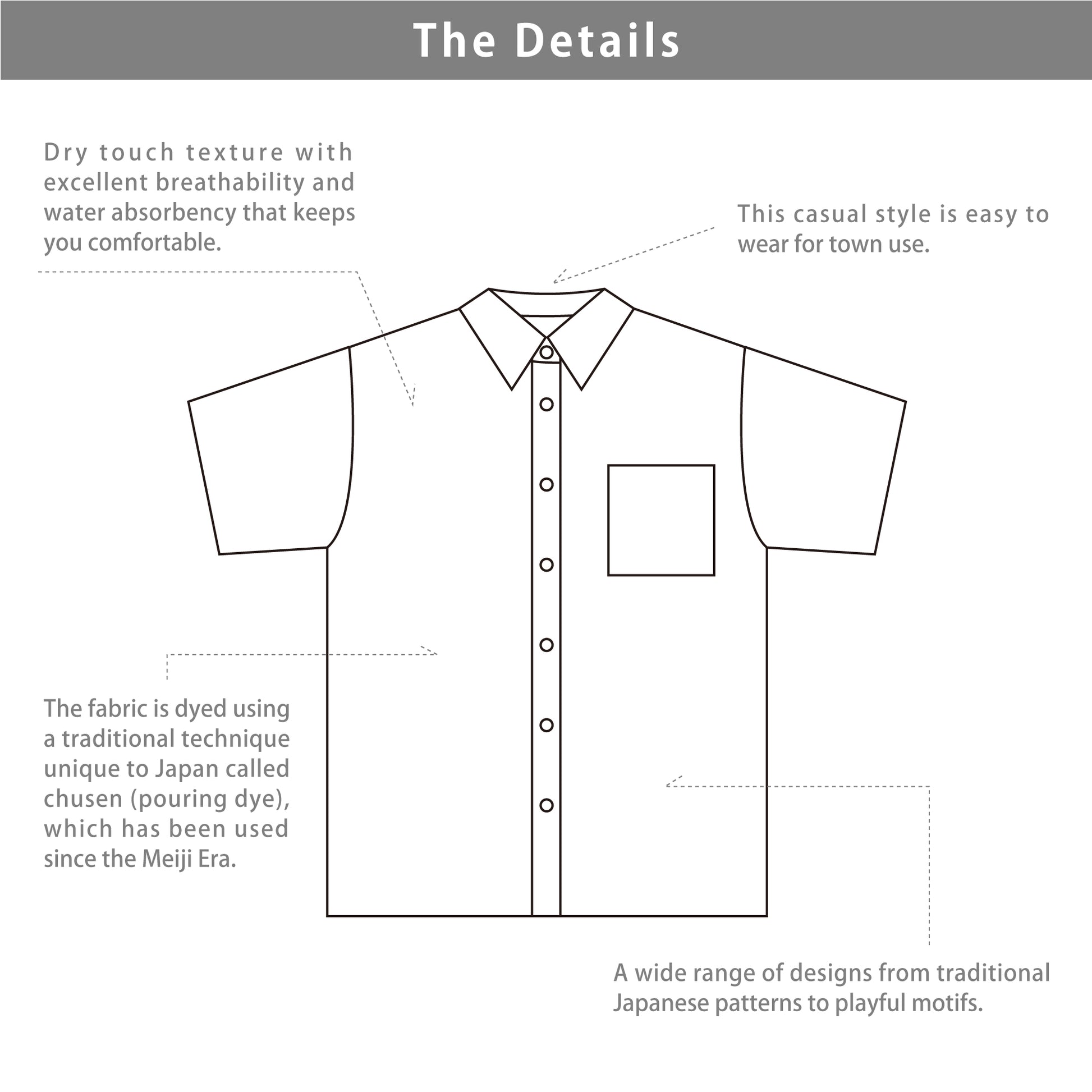 Kamawanu's original tenugui shirt is made of "bleached fabric," which has a pleasantly light feel to the skin. It is dyed by "Chusen," a dyeing technique unique to Japan. The colors may fade due to the hand-dyeing process, but the shirt becomes softer and more comfortable every time it is washed.