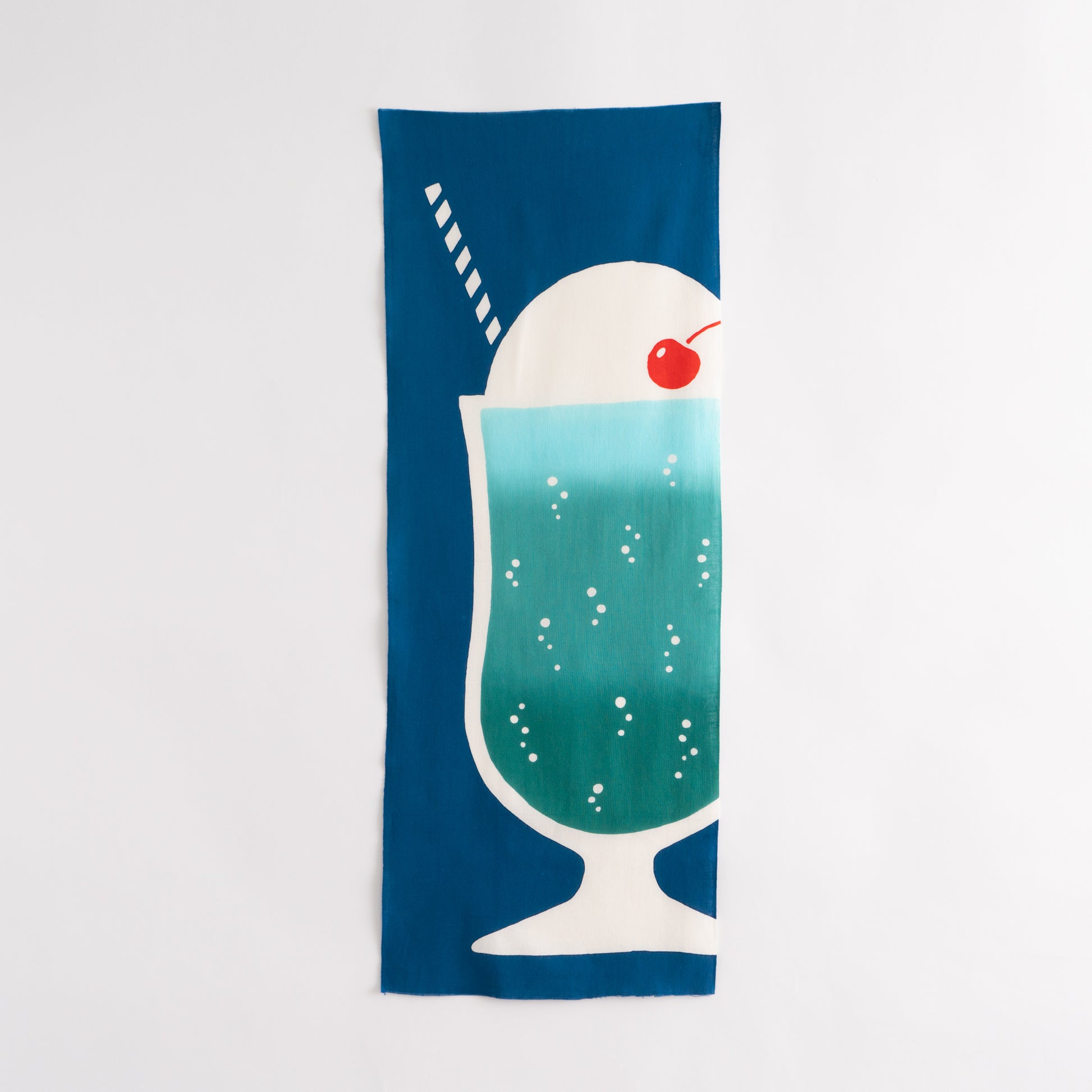 This unique tenugui hand towel boldly depicts a cream soda, a staple of coffee shops. The retro atmosphere is recommended for coffee shop lovers.