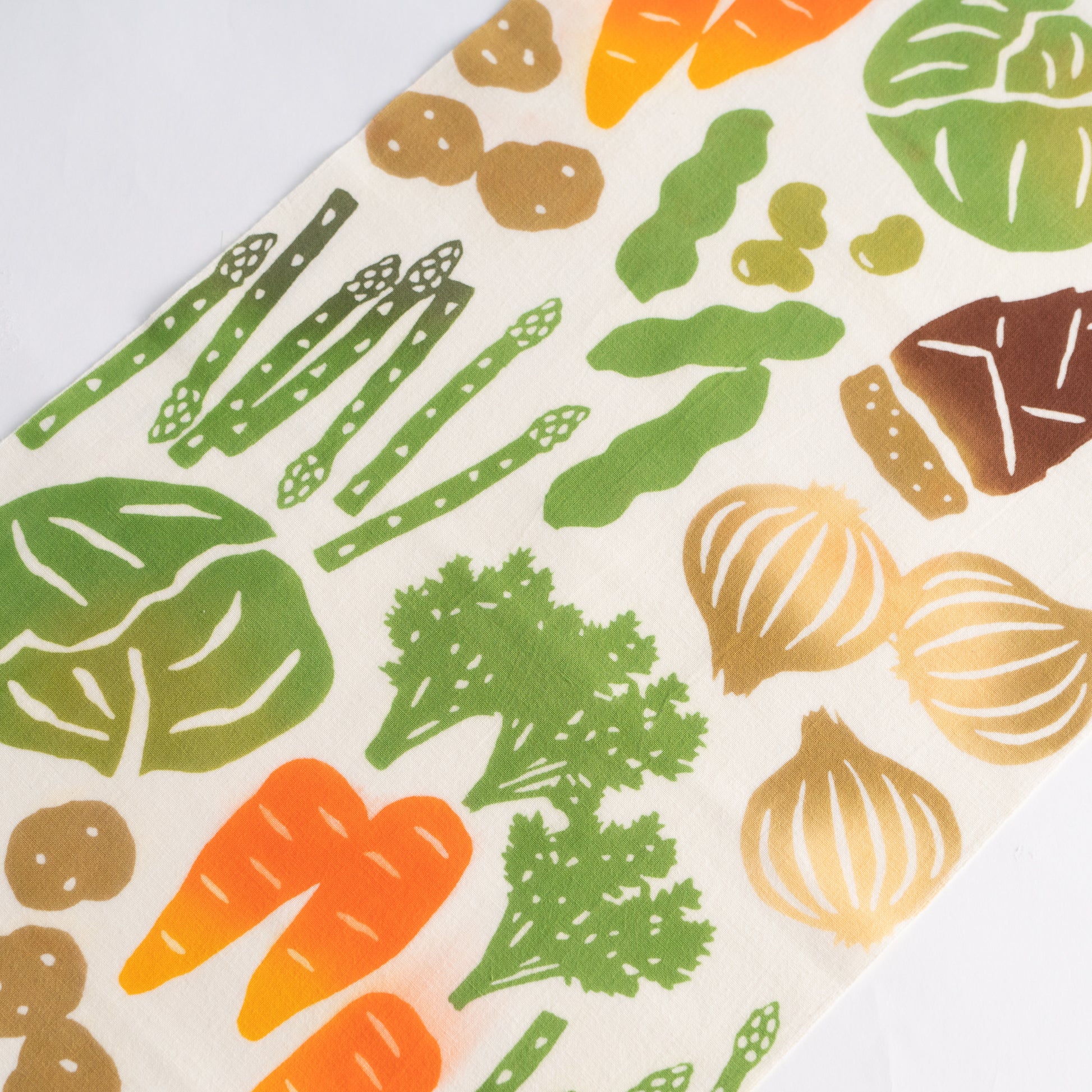 This tenugui celebrates eight types of seasonal spring vegetables—snap peas, asparagus, potatoes, carrots, cabbage, bamboo shoots, onions, and more—illustrated across the entire fabric. Each vegetable’s freshness and texture is brought to life through skilled artisans’ expert gradient-dyeing techniques. Display it in the kitchen or living room to add a vibrant touch of spring to your home. Recommended for: Those looking for a thoughtful gift for restaurateurs or anyone who enjoys cooking