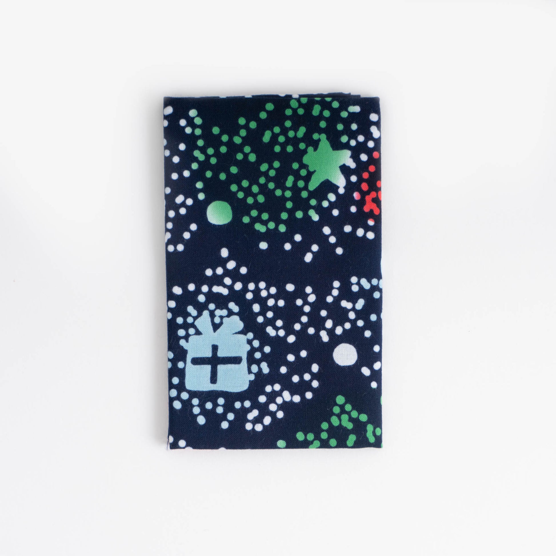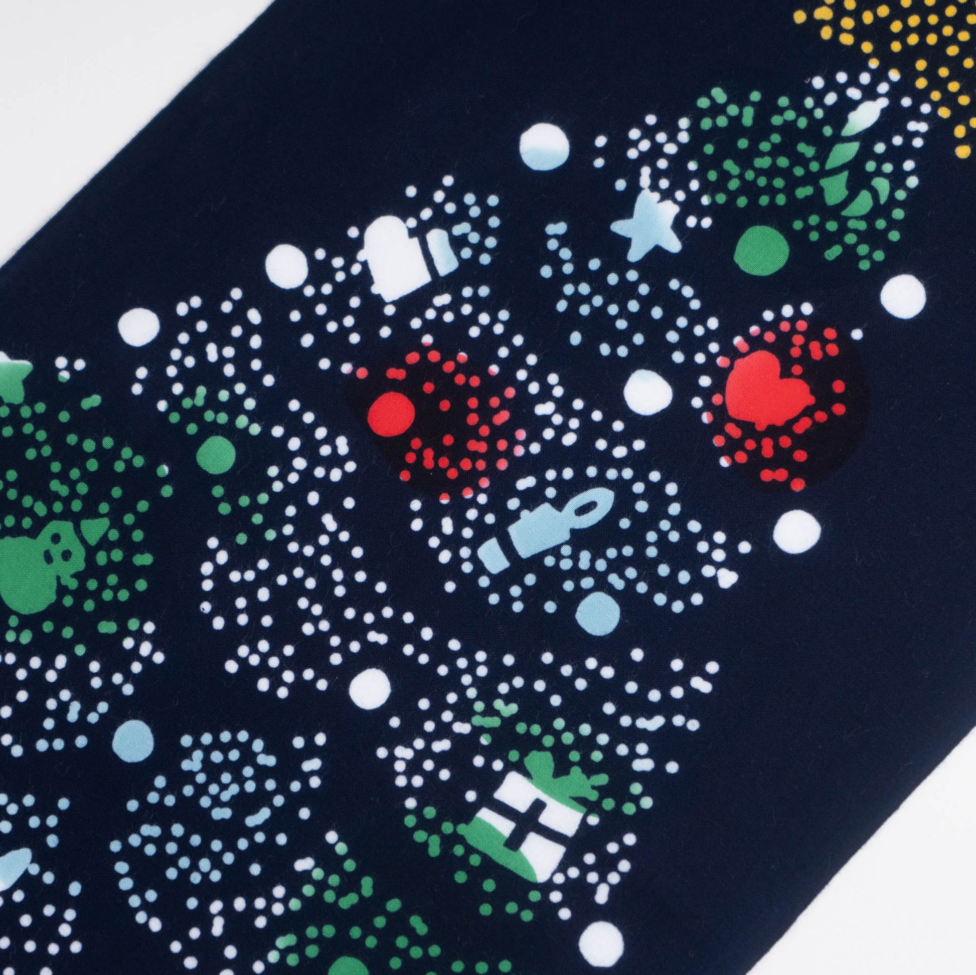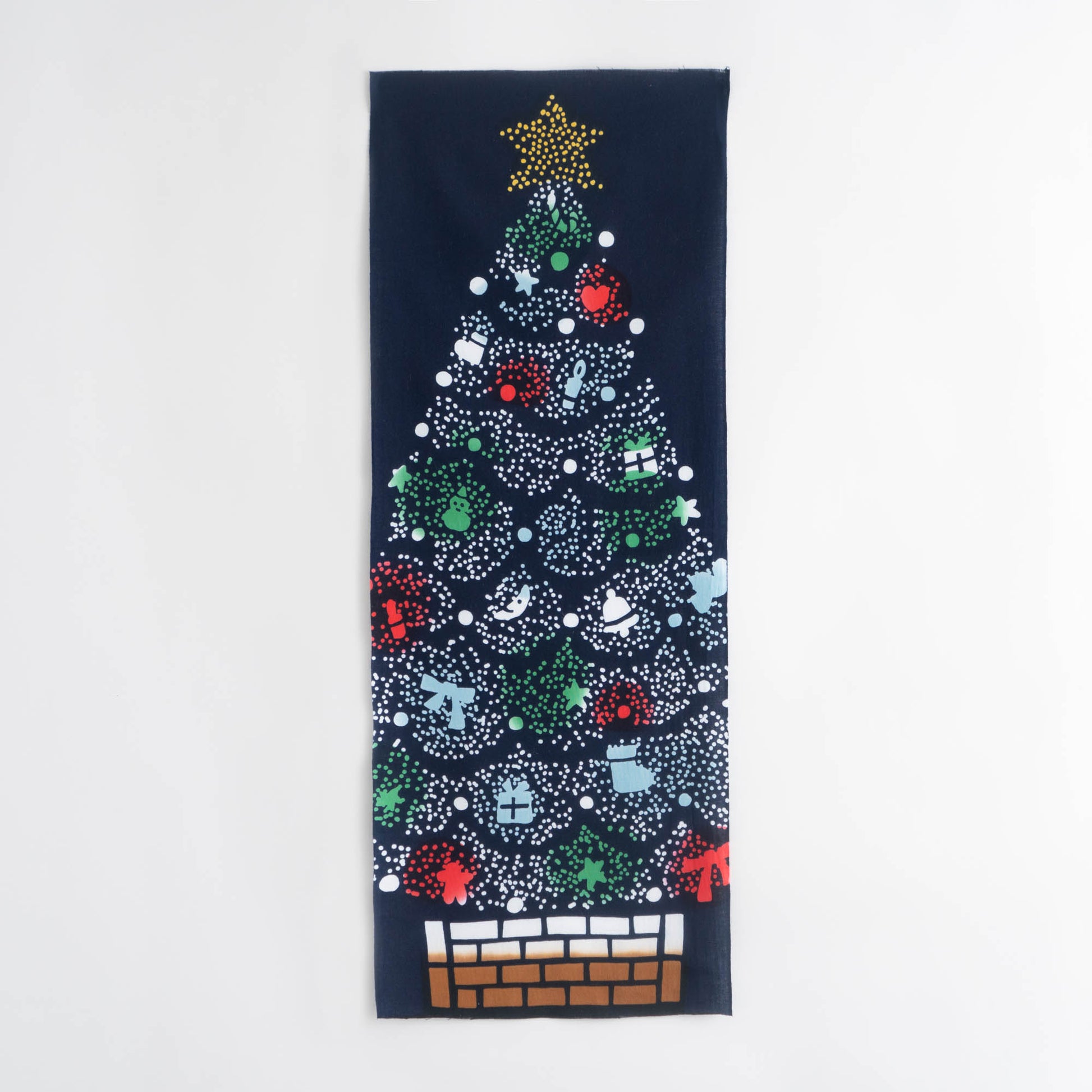 This tenugui towel beautifully depicts a Christmas tree shining brightly during the holiday season, using a technique unique to chusen (pour-dyeing) that allows for soft gradations to be dyed. The design is heartwarming, even on chilly winter days.