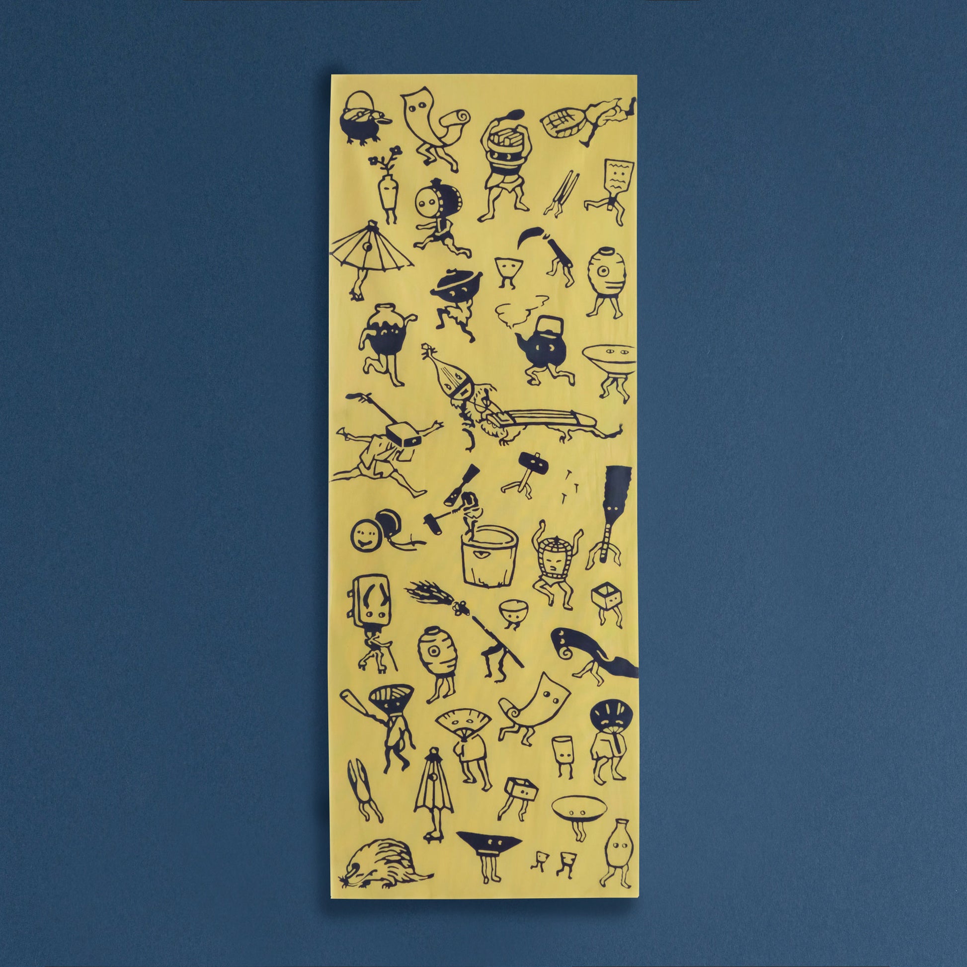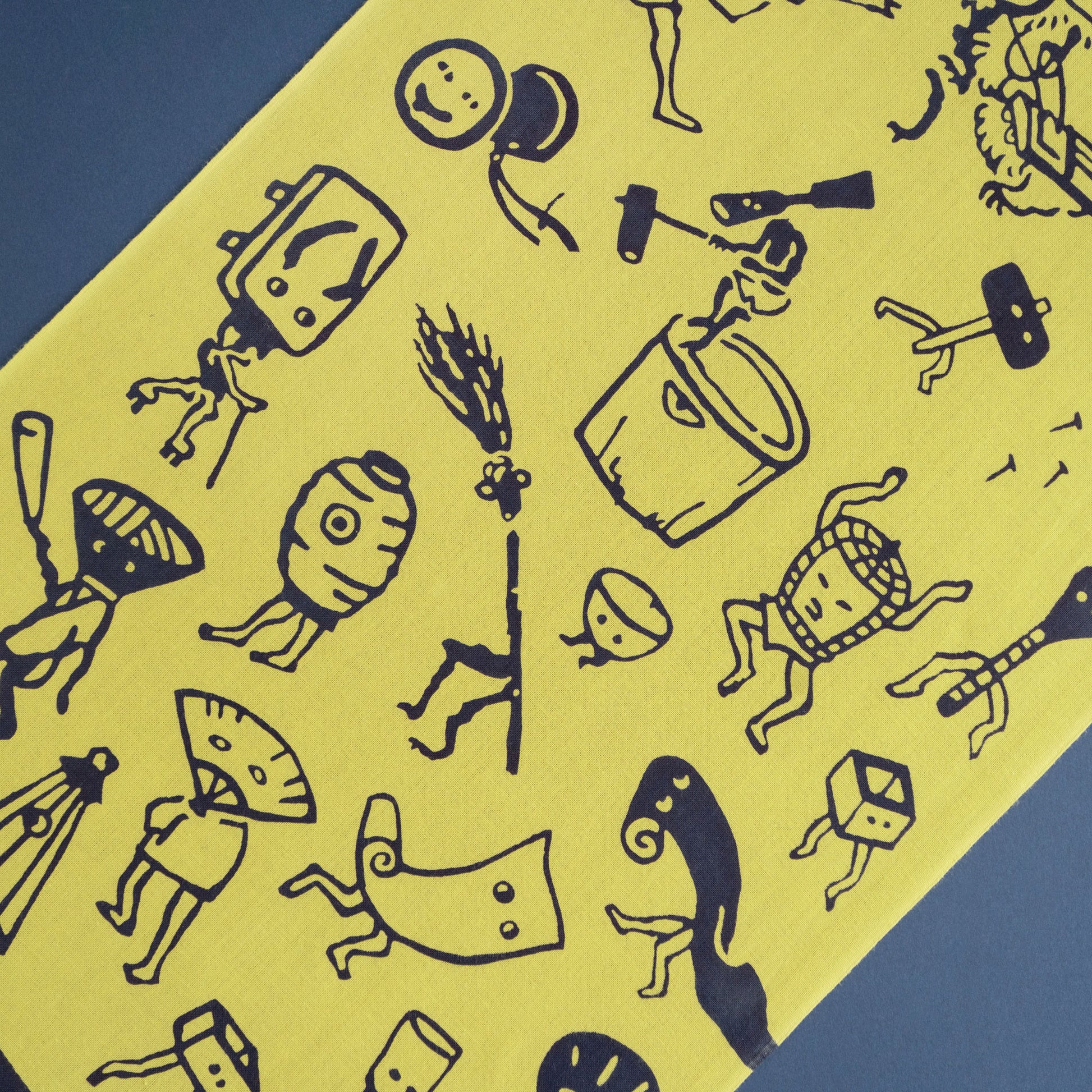 This tenugui depicts tsukumogami, which are tools that have turned into yokai.