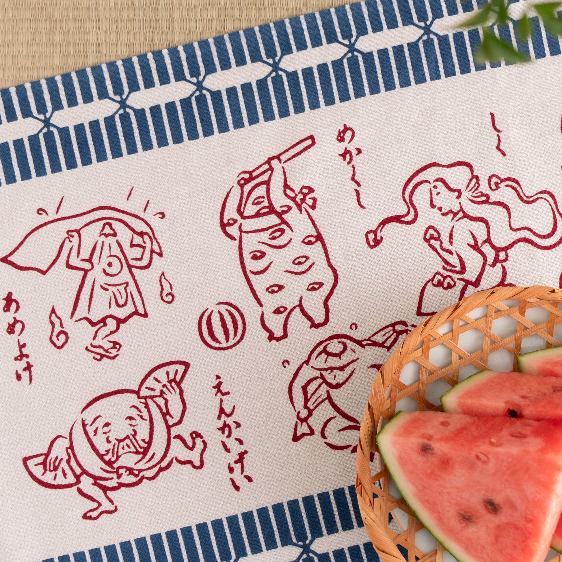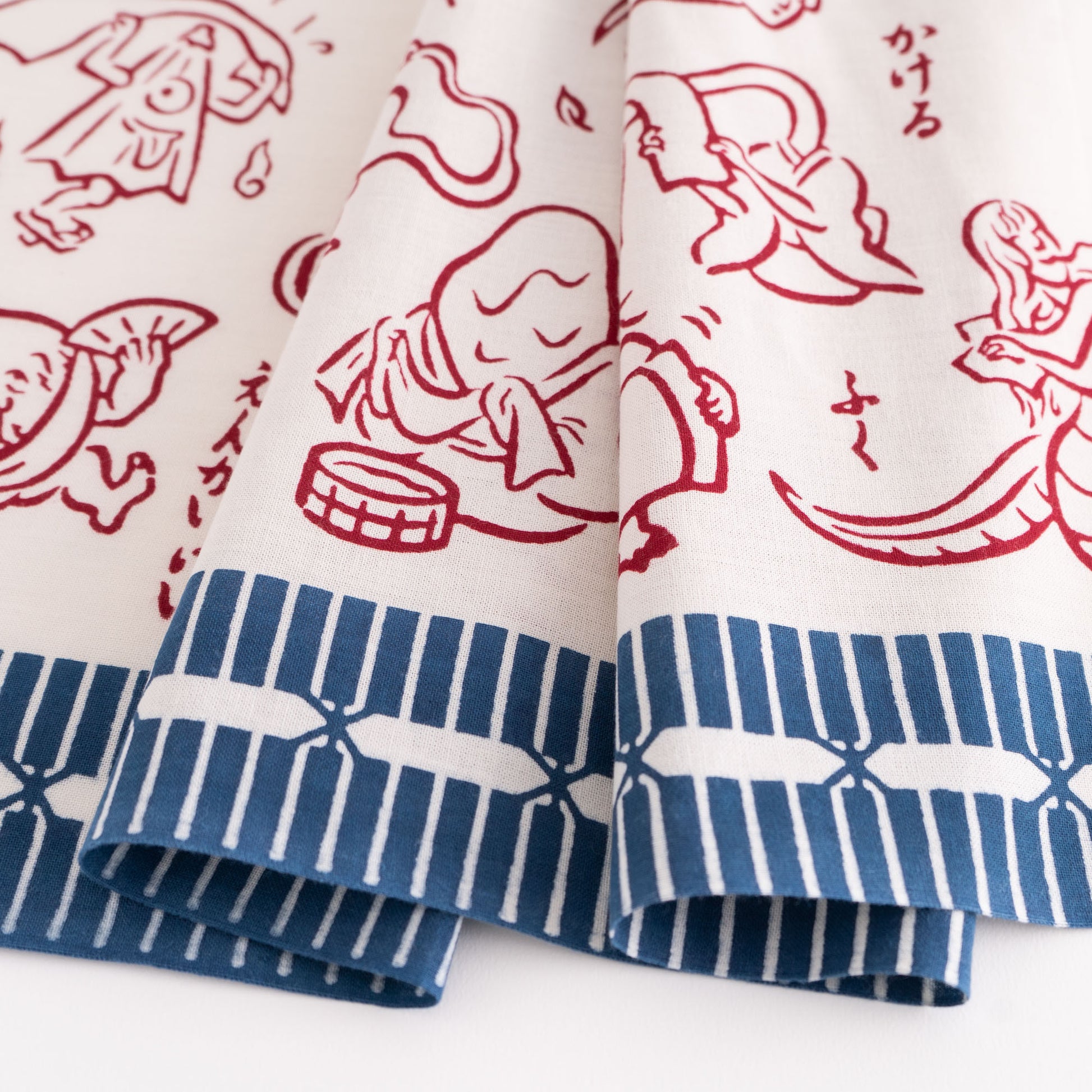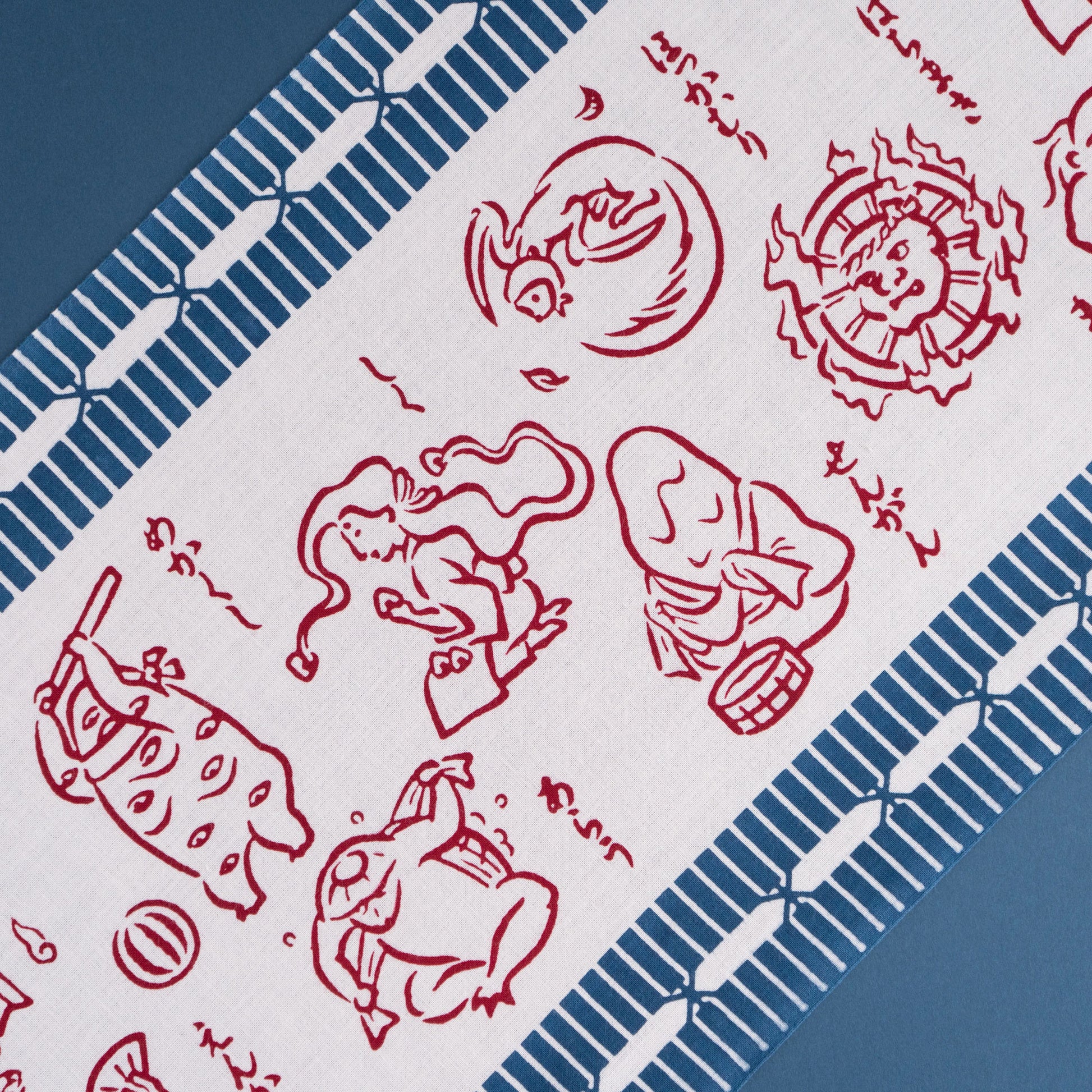 This tenugui imagines how the yokai appearing in Japanese folklore and legends would use tenugui themselves. Each yokai humorously uses a tenugui according to their own supernatural quirk, making this a design that fuses tradition with playfulness.