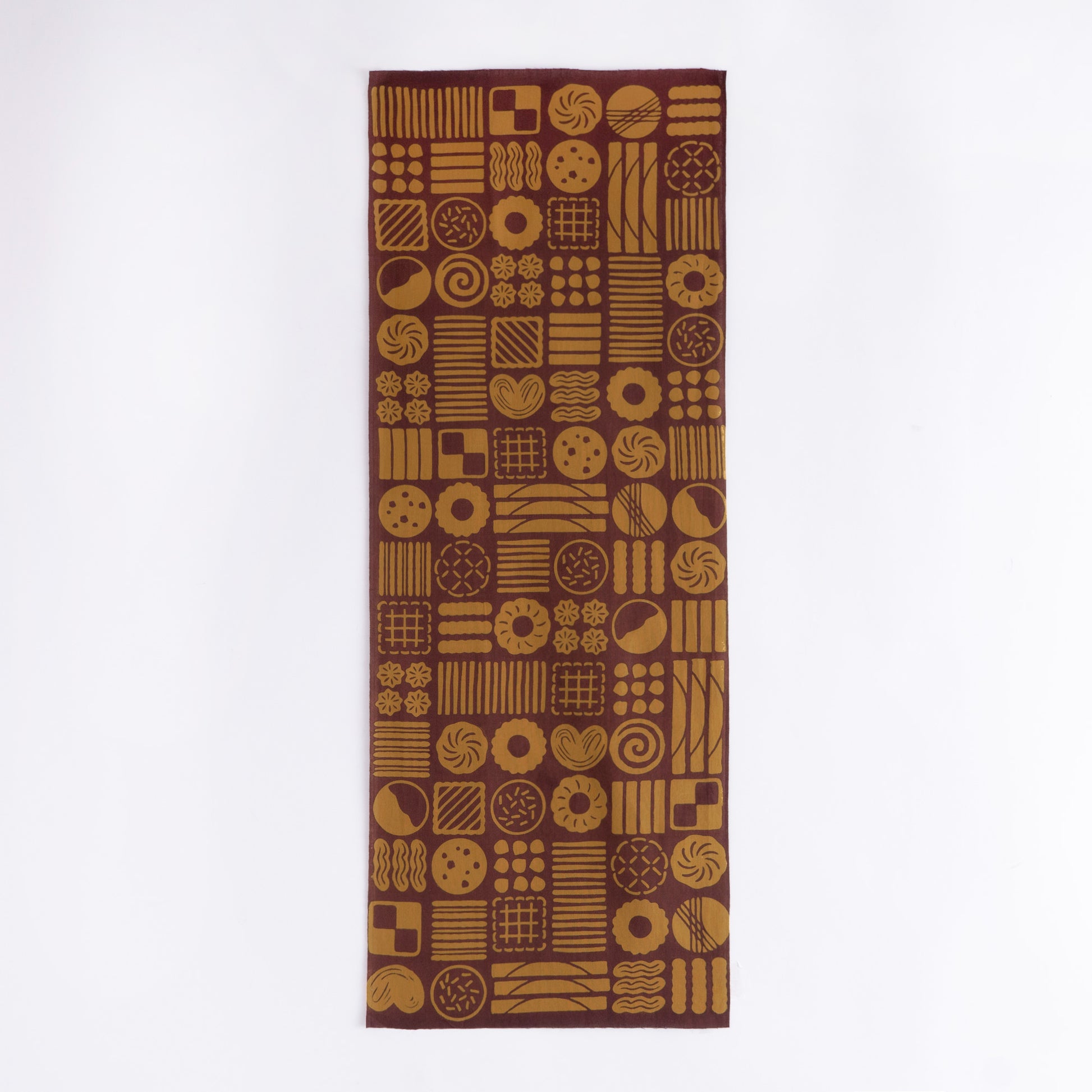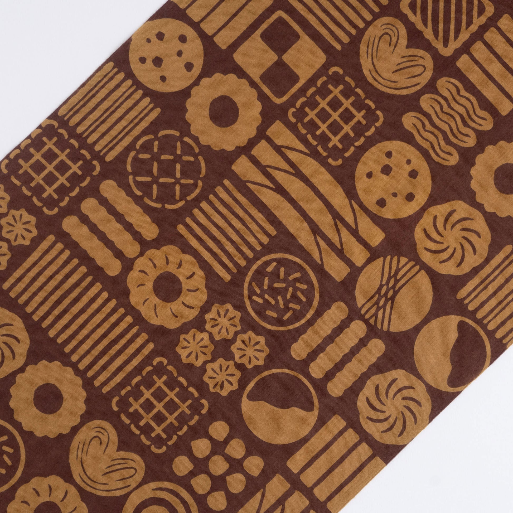 This tenugui captures the joy of opening a cookie tin, with rows of delicious-looking cookies neatly arranged. Featuring cookies in a variety of shapes, it’s a playful design that reveals something new every time you use it.