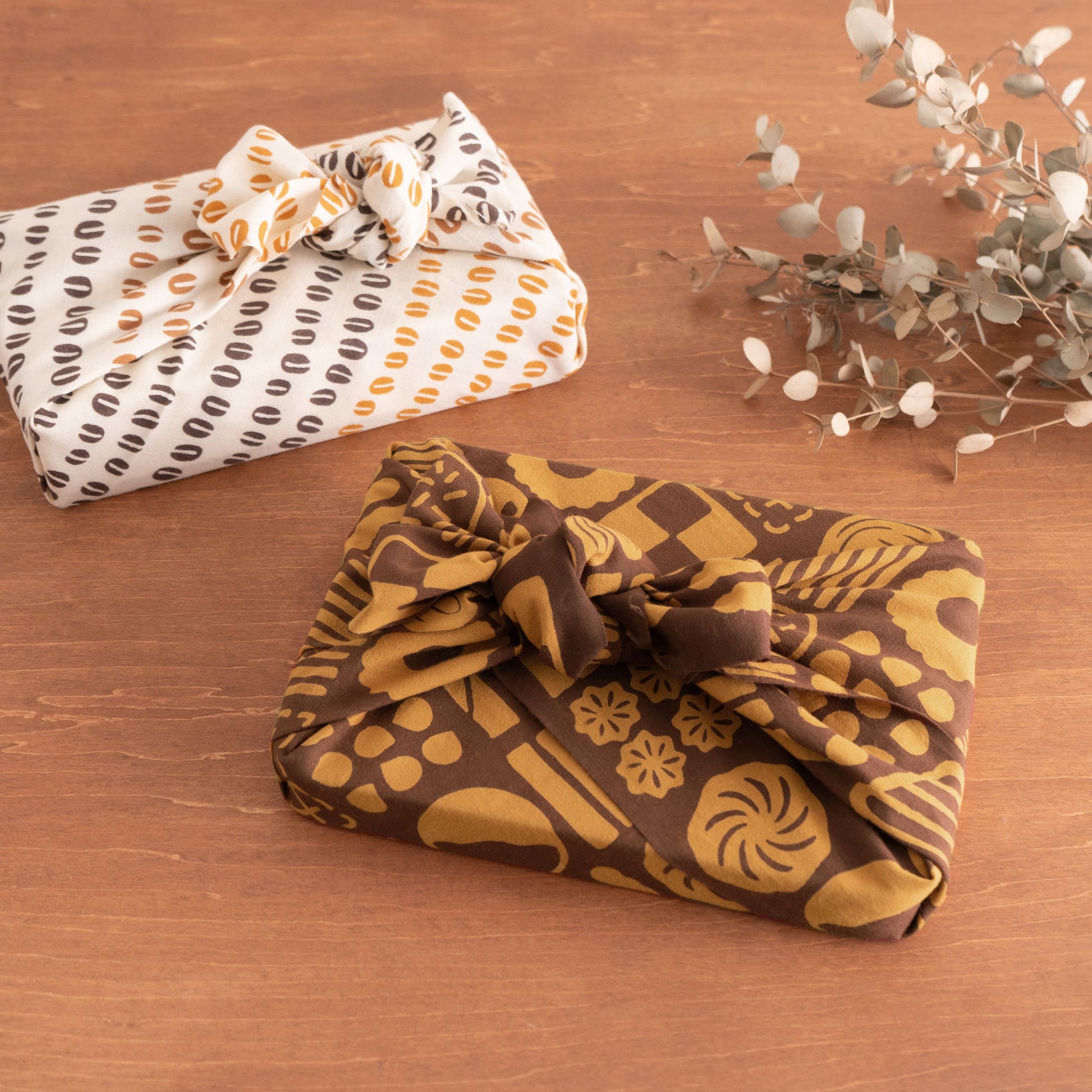 A selection of tenugui in rich chocolate tones, evoking the sweet, delicate aroma of chocolate. Featuring motifs reminiscent of chocolate bars and cacao and combined with the subtle overlapping colors unique to chusen dyeing, these pieces bring a gentle, heartwarming sense of calm just by looking at them.