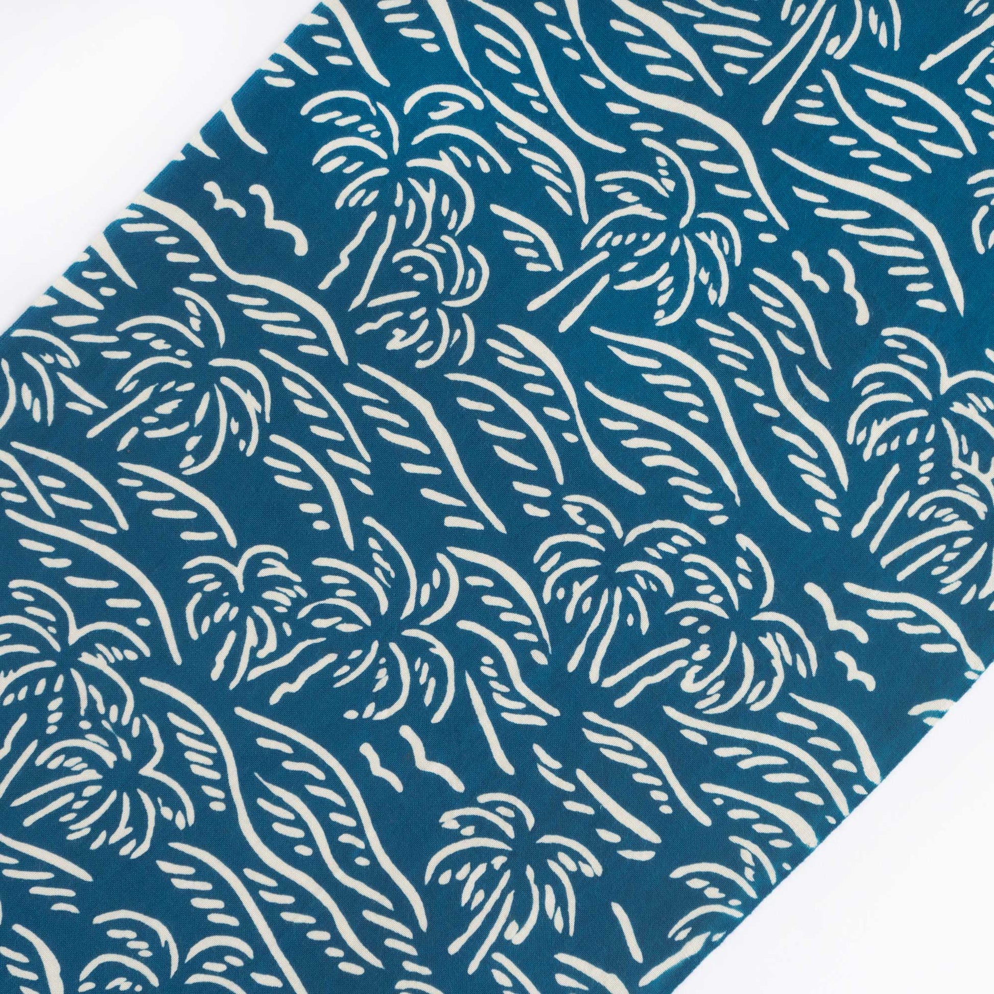 This tenugui is inspired by vintage Japanese kimono and yukata patterns reminiscent of aloha shirts. The resort-like design, evoking tropical scenery, is perfect for the height of summer. Use it to wipe away sweat or shield yourself from the sun—the worn, lived-in character it develops over time is part of the charm. Perfect as an accessory for hula dancing or marine sports.